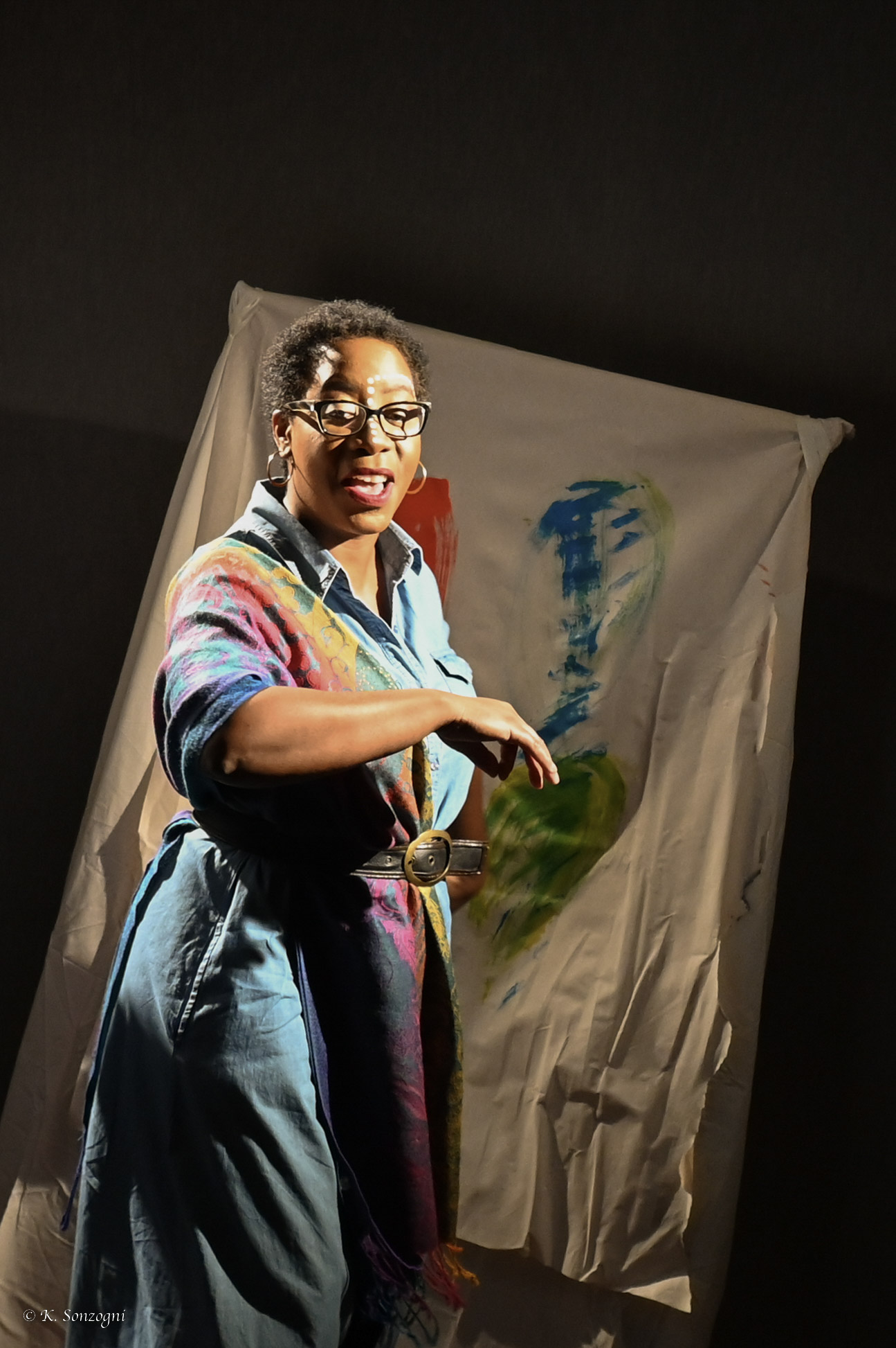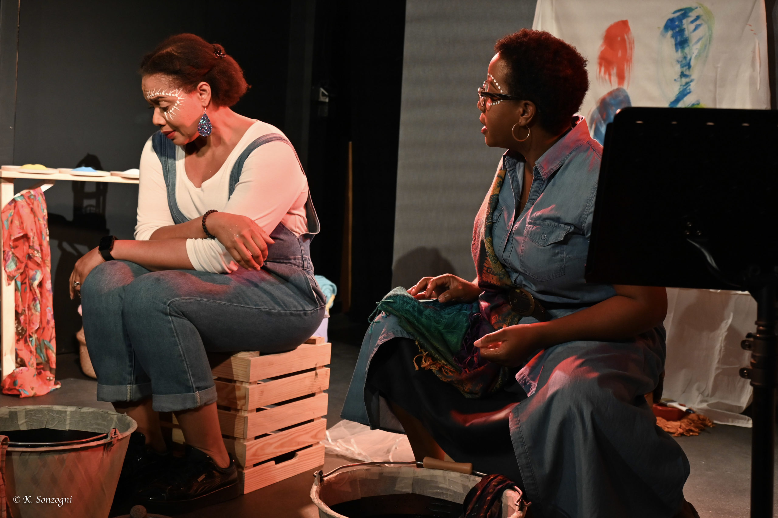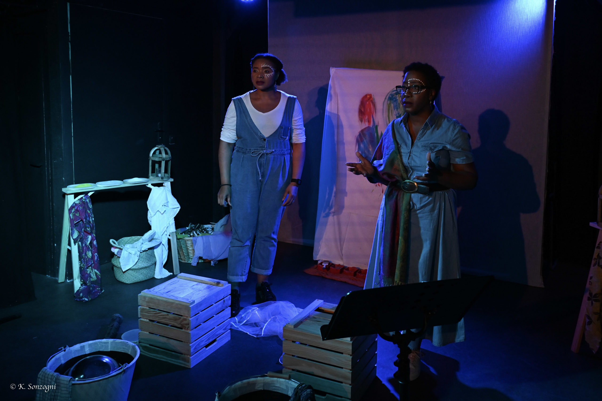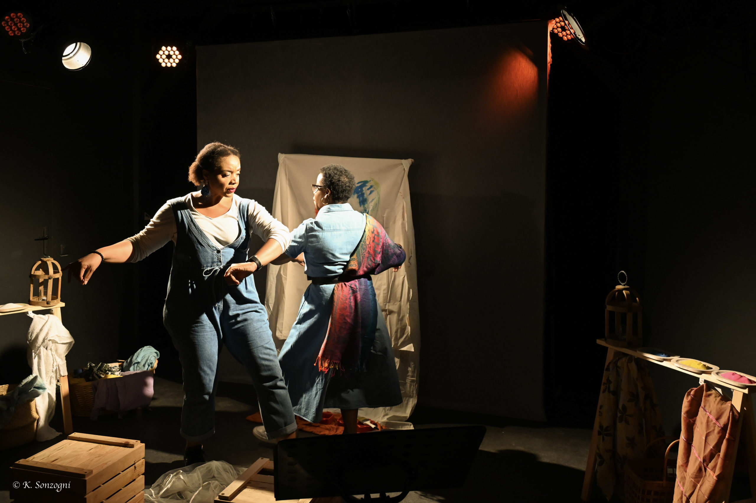 sur le même schéma que le spectacle, et après leur avoir exposé le point de départ de celui-ci, nous invitons les élèves-spectateurs, accompagnés et guidés par les 4 comédiens, à devenir tout d'abord conteur en présentant sur scène la problématique au public, puis acteurs en improvisant sur une scène d'incarnation des personnages. La parole pourra être multiple. Ainsi, il pourra y avoir une ou plusieurs personnes pour incarner les différents rôles, afin d'enrichir les dialogues improvisés par différents points de vue, et de se soutenir pour faire tomber l'inhibition, et ainsi permettre le processus créateur. Ils pourront donc découvrir l'expression théâtrale et l'articulation du spectacle de l'intérieur.